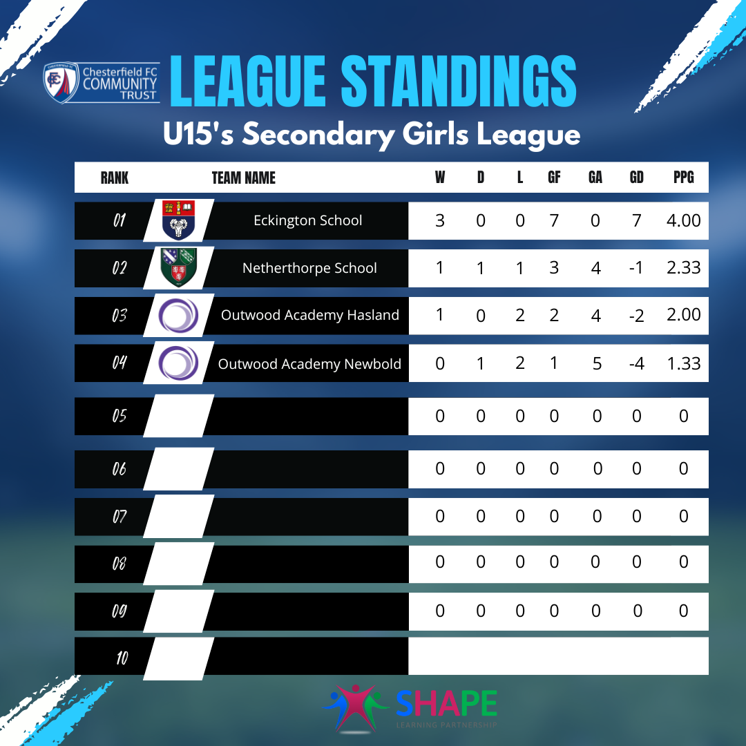 The race is on! Schools across Chesterfield and North East Derbyshire are battling it out for top spot in our competitive football leagues. Check the latest standings and see which teams are making their mark this season.