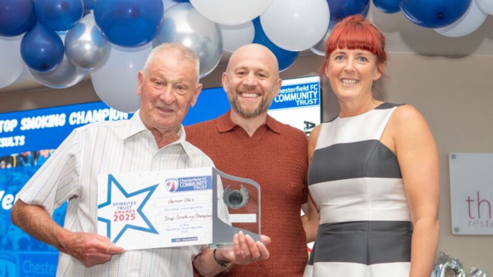 Vernon was rewarded with the Stop Smoking Participant of the Year award at the 2025 Chesterfield FC Community Trust Awards Evening. Vernon commented: “It meant a lot to me, because I was the first one to achieve this (one year since quitting smoking).”